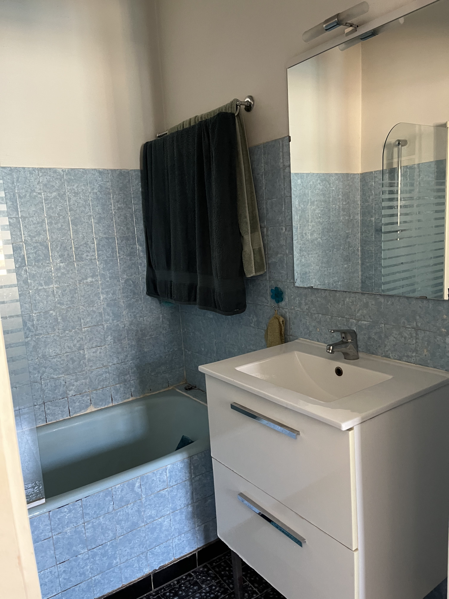 Appartement T3 de 65 m² situé au 1er étage en plein centre de Villeneuve Tolosane comprenant : 1 séjour de 18.60 m² avec cheminée, 1 cuisine fermée de 7.70 m², 2 chambres de 18.94 m² et 12.88 m², 1 salle d'eau avec baignoire et lavabo, 1 WC séparé. Balcon au Sud de 3 m²