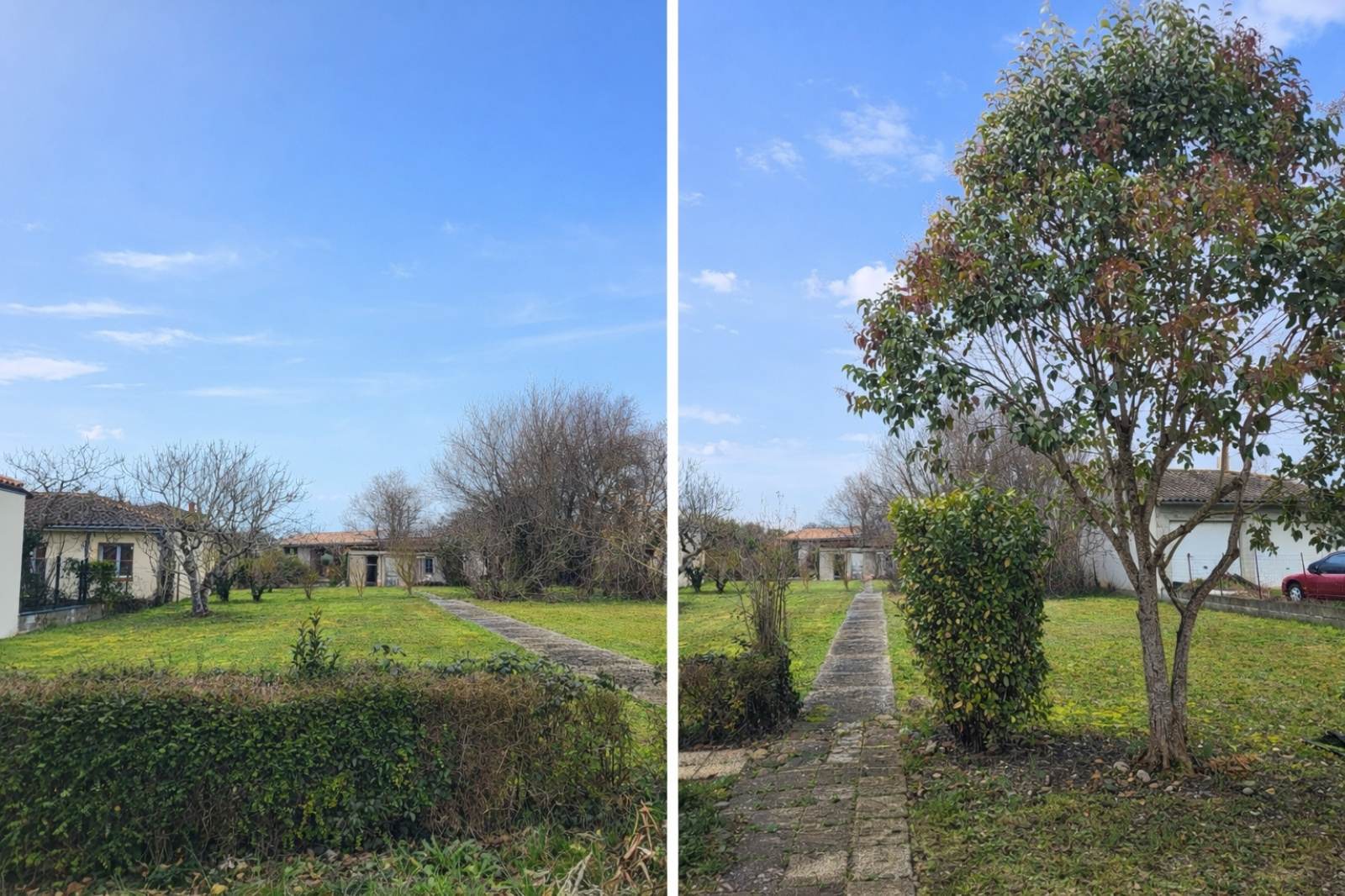 Maison individuelle T4 de 110 m² avec garage de 61 m², le tout sur un terrain de 1610 m² (terrain constructible, division possible).
