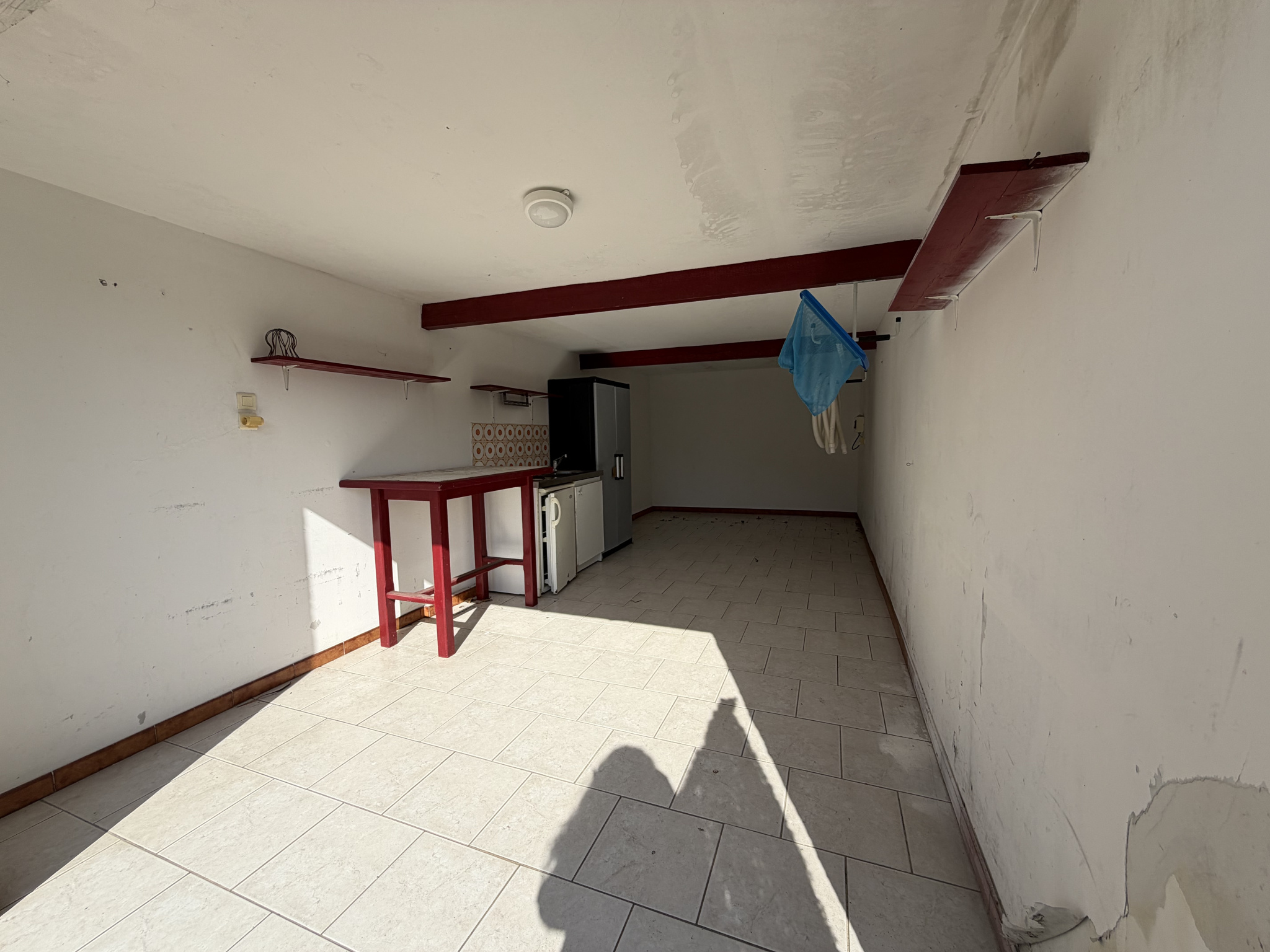 Maison individuelle T5 de 117.50 m² construite en 1970 avec la partie habitable au premier étage sur une parcelle de 1012 m² avec pisicne, un grand garage de 54 m² et 58 m² au rez-de-chaussée habitable.