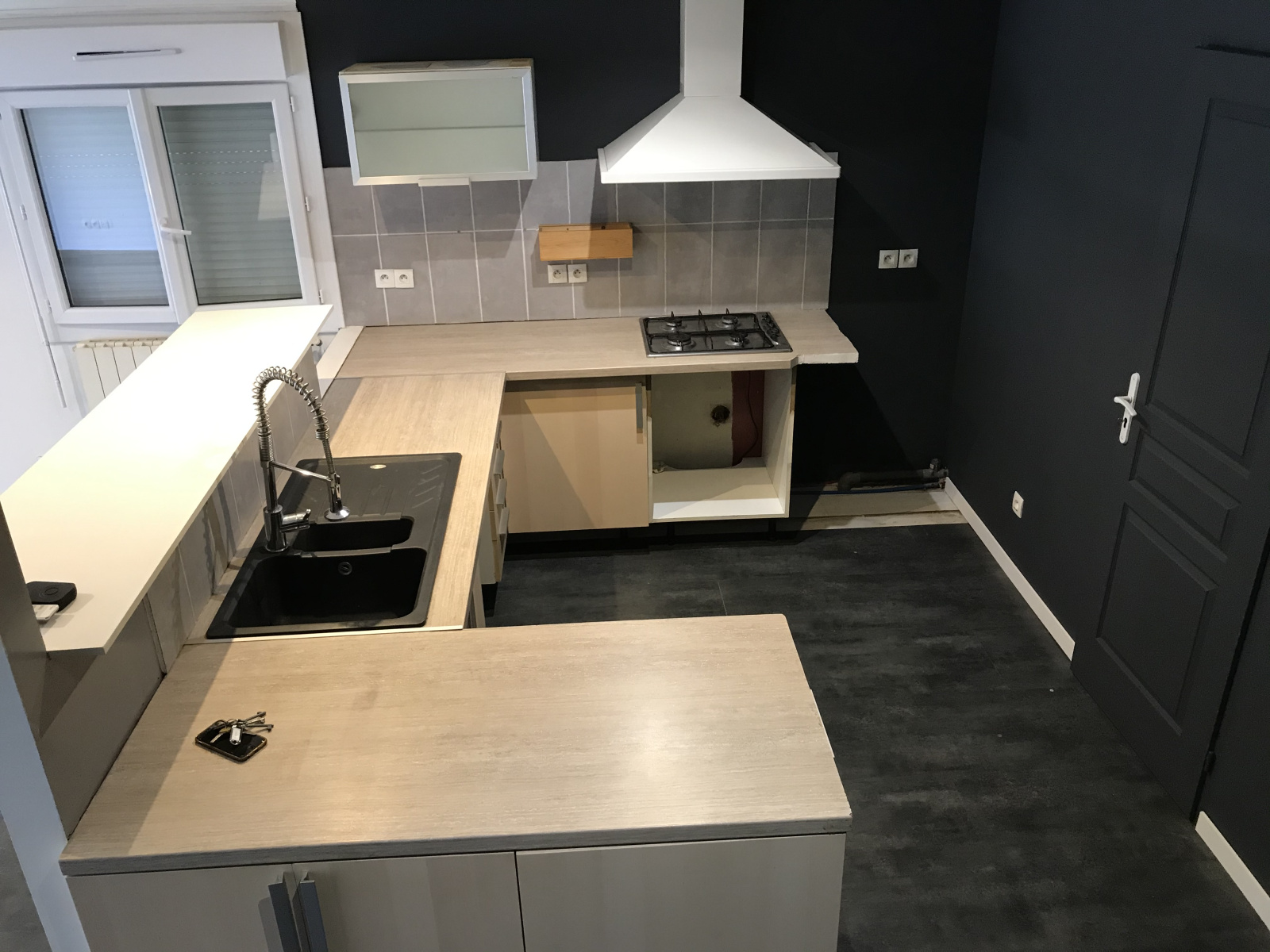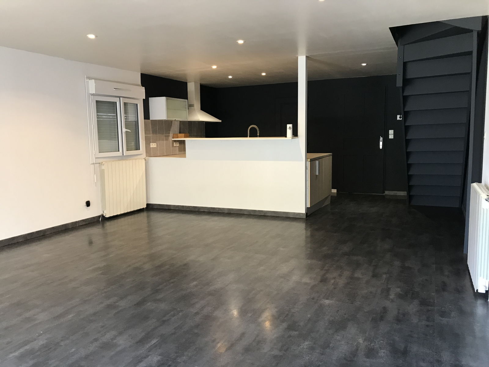 Au rez de chaussée, un séjour avec cuisine ouverte et un WC.
