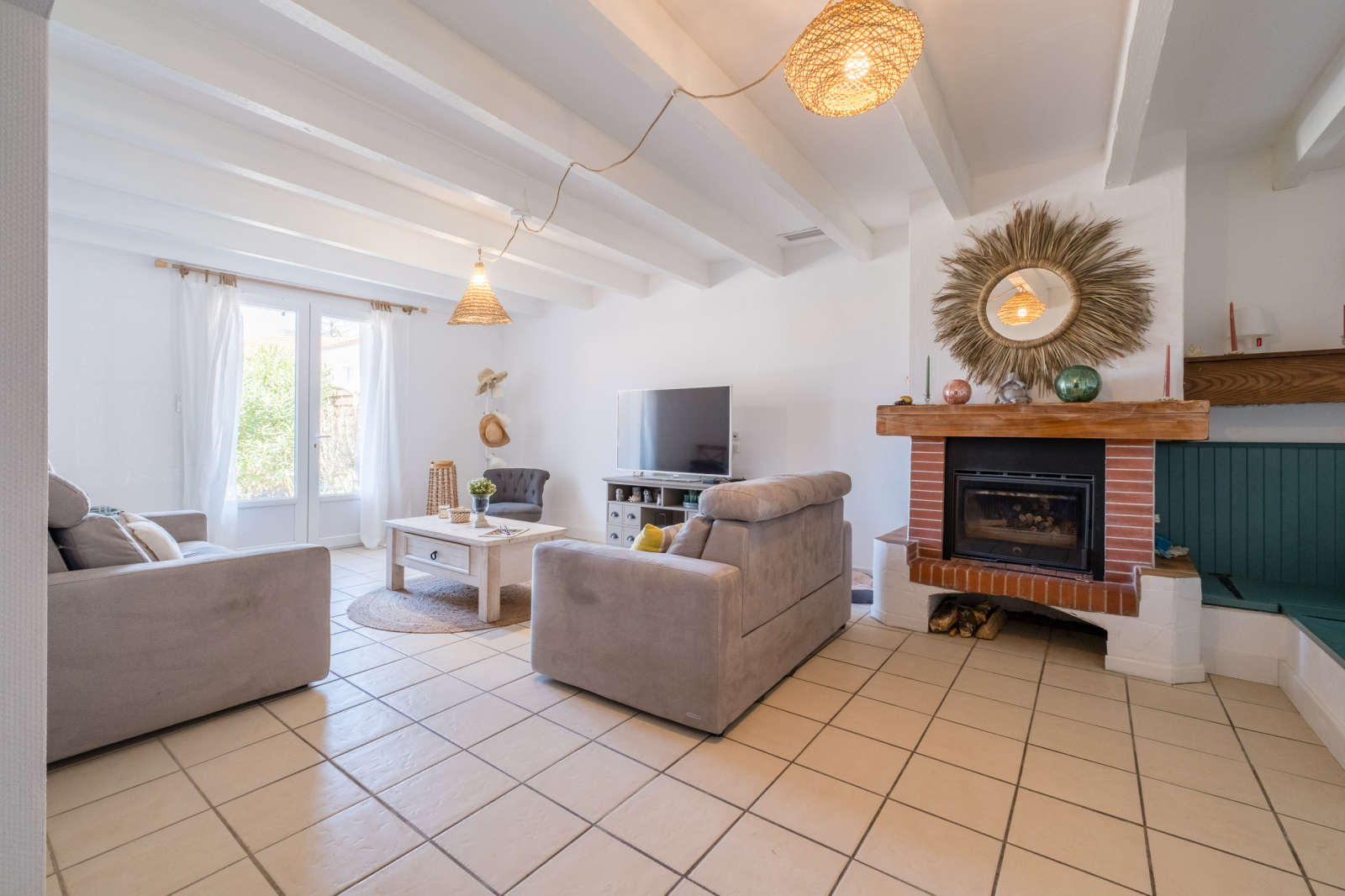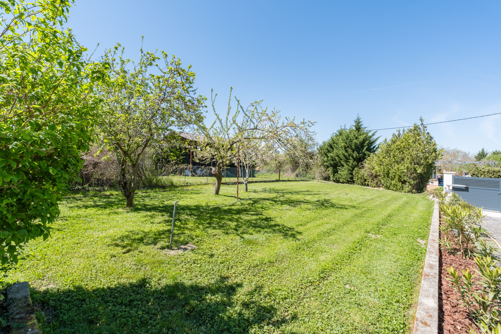 Coté extérieur, un beau jardin (constructible) avec terrasse, un garage, un atelier et deux abris pour garer vos véhicules.